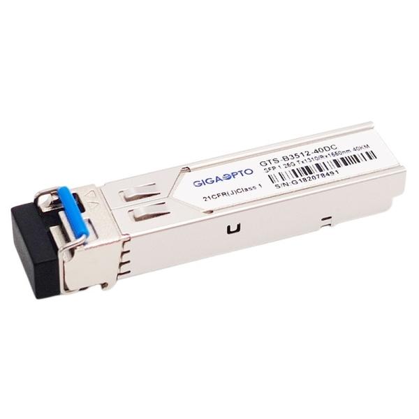 The GIGAOPTO's GTS-B3512-40DC transceiver is a single fiber bi-directional 1.25Gbps Small Form-factor Pluggable (SFP) BIDI module for use in 1000BASE Ethernet and 1G Fiber Channel. The 1000BASE-BX40 BiDi SFP transceiver provides up to 40km high-speed data links of 1000Base-BX throughput over single-mode fiber (SMF) using 1310nm-TX/1550nm-RX wavelengths via LC simplex connectors.